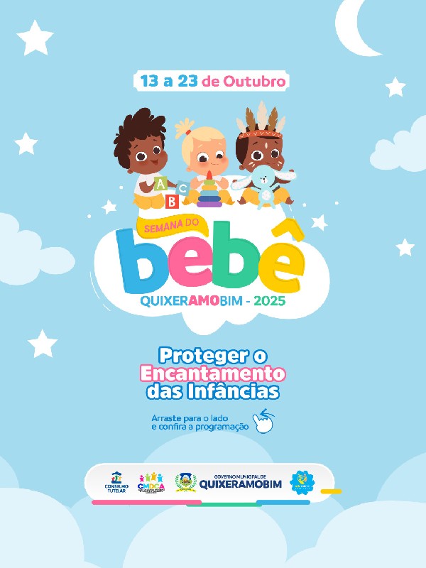 De 13 a 23 de outubro, Quixeramobim vive um dos momentos mais especiais do ano: a Semana do Bebê, com o tema "Proteger o Encantamento das Infâncias".